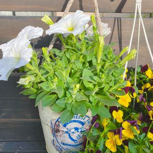 ハンキングバスケットモリモリになってきました! こちらはおゆきちゃん全面に写しました。 切り戻しかけようと思っていますが、☔降っても結構元気なので迷い中…でも元気なうちがいいんだよね💦 毎日少しずつ整理していたのですが鉢植えのペチュニアはすべて切り戻し終わりました♫ 最初の方に切り戻した子たちがイキイキと根付いて少しずつ咲きだしました。 ほんとペチュニア強いわ〜👏