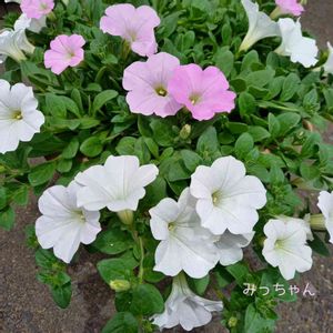 杉井明美さんのペチュニア 『さくらさくら&おゆきちゃん』混色 組み合わせどうかな~と思ったけど、バッチリ👌かな😊 順調にきたのに、☔の日ばかり……トホホ😖