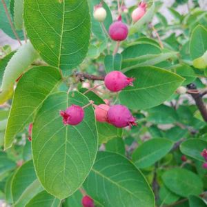 ユスラウメと聞いて、頂いたのですが・・・ 皆さんが投稿されているのと、ちょっと違う気がします 💦 コロンとちんまり とても可愛いく色付いてきました 教えて頂き「ジューンベリー」と分かりました ユスラ食べたかったなあ(笑)