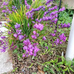 毎年ほったらかしでも咲いてくれるバビアナさんと木質化してきたフレンチラベンダー 沢山咲いてきました💜💜💜 昨年お迎えして鉢植えにしていた宿根サルビア💗💙 元気がなかったので、地植えにしたら元気になりました🎶🎶 狭かったのかな😅