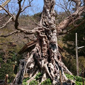 おはようございます😊 熱海に行った方は 必ず足を運ぶと 言ってもいいくらいの パワースポットを訪れてきました😄 yoyoさんの 🏷️木曜日は木 Thymusさんの 🏷木はいいなぁ 🏷️木曜日は木に咲く花 🏷️巨木古木の木曜日 🏷️木肌 に参加させていただきます😊 今週は 伊豆旅行 熱海編〜🚗³₃🌊🐟❁⃘*.゚🌳 その④ 「来宮神社の大楠🌳✨️✨️⛩」 樹齢2100年以上 と言われているこの大楠には 伝説があります 「昔 来宮神社には7つの楠木があって 漁業に関する事件が起こり 訴訟費用を捻出するため 5本を切ってしまったそうです あと1本切ろうとしたら 白髪の老人が現れて 手を広げ 斧を割ったとのこと 神のお告げだと村人たちは悟り 木を伐採するのを止めたそうです それがこの残っている御神木の大楠だそうです🌳」 🌟.。*゜ .*.。🌟.。*゜ .*.。🌟。*゜ .*. 想像以上の巨木だったことと 木肌が見たことがないくらいの迫力だったことに驚き ソッと触らせていただきました✋🌳 本州で一番大きい木とか🌳✨️ 3枚目 御神木の脇から?! マンリョウ🔴🔴🌿.∘と 思われる植物が出ていました😳 ⛩内には ほかにも アオキ マンリョウ 孟宗竹などの 縁起のいい植物たちが たくさん植えられていました😊 クスノキ科 樹高26m 幹周り23.9m 国の天然記念物に指定されています🌳✨️ それではみなさん.•♬ 今日もステキな1日を お過ごしください🍀*゜✨ ✩*⋆°ෆ*⋆°ஐ*⋆°✩*⋆°ෆ*⋆°ஐ*⋆°✩