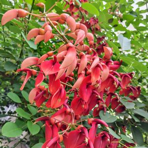 アメリカデイゴ、元気な赤! 植木ペディアより 初夏から初秋にかけて真っ赤な花を咲かせ続けるアメリカデイゴは、南アメリカ(ブラジル及び北部アルゼンチン)を原産とする暖地性の花木。日本へ渡来したのは江戸時代末期のこと。 沖縄で県の花に指定されているデイゴは別種である。 仏典では「波利質多羅樹(はりしったらじゅ)」と呼び、天上界の花とされる。 あら、また天国行ってみちゃった😆
