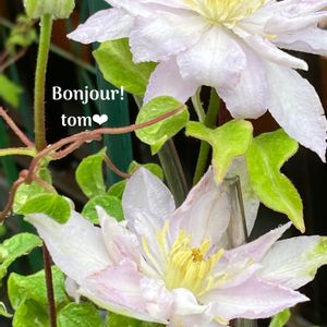 クレマチス❤︎ ✨ダンシング・キング ✨ いつの間にか蕾をつけてたのね⁈😆 優しい色合い💖 今日も凄く暑い🫠