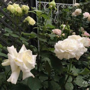 多分、クリーミーエデン🌹 娘の結婚式にブーケで使った薔薇🌹 早いもので10年前かな〜😅 切り花なので、咲くと長持ちします💖 でも、上手に育てられなくて なんとく、このぐらいの生育で ストップしてます😅 アイボリーのカップ咲き コロンとしてかわいいです。