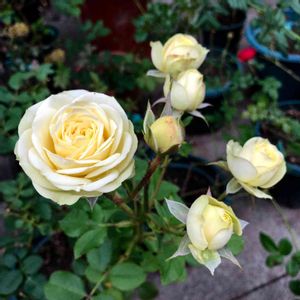 ビニールハウスにバラ鉢を移動して処狭しとなり、イテテ、イテテと言いながら洗濯物を干し、 次にイテテ、イテテと言いながら香りをかいでおりました✨ 蝶や蜂のようには渡り歩けないものです。 すると!ちょうどクリーミーエデンが愛で頃に鑑賞頃になっておりました🌹❇️ 殺気立ちながらいつものようにアクロバティックなポーズ🤸で撮りました。 ほぼ実物大です😳 クリーミーエデンて、私に言わせると一番のフォトジェニックなんだよなぁ。