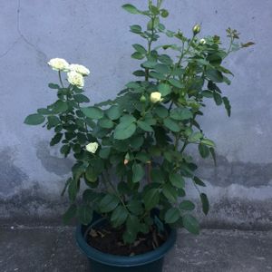 京成バラの クリーミーエデン🌼🌼 カップ咲でクリーミーグリーンの花色が可愛い🌹 四季咲き 仏 メイアン 花径5〜6cm 樹高1.5m 微香 アンティークタッチFLタイプ コストコにて購入 癌腫病に罹り縮小ぎみ、地植えで2年経過🌼🌼