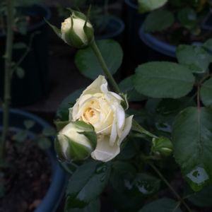 クリーミーエデンをアップで。蕾も可愛いし、この控えめな色合い、たまりません。