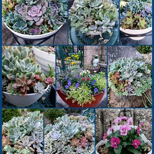 【 秋の寄せ植え 】 多肉寄せ植えを作って40日ぐらい経ち、最近の寒気で少しずつ可愛いく色づいてきました☘️ 花の寄せ植えは10日程 経ちましたが、ふんわり可愛いくなってきました💐