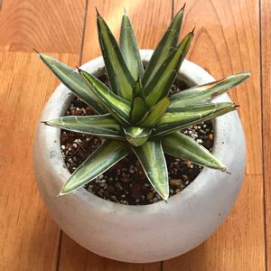⌘アガベ笹の雪錦黄中斑。 遂に子株だけになってしまった🤦🫠 うーん、大丈夫かな🤔