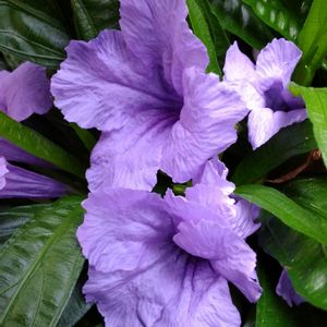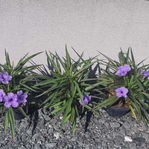 紫ついでにもう一枚😉 ルエリア トロピツクスター かな 2年前位に💜💟💖と買ったけれど冬に枯れました…最近見かけるようになり再度チャレンジです 以前の物より元気なので…冬越し出来るかな🤔 元気ですね‼︎ 鉢を庭に置いたら根付いて動きません💪💪