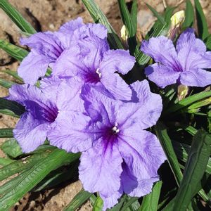 おはようございます😊 ルエリアトロピックスター キツネノマゴ科 溢れ種から離れた地面に咲き始めました❣️ 開花時間が短いお花は、突然の豪雨にも負けず咲いています💜 mimozaさん発信 🏷️0の付く日は雨粒の日 🏷️彩月(いろどりづき)の青い花2025 🏷️美しく青きドヨウ