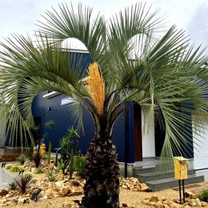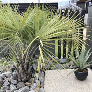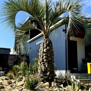 夏ですね。 地植え冬越し1年目のロベレニーも寒さ対策の養生を外して3ヶ月、枯れ果てた姿からほぼ元の姿に復活しました🌴レクリナータもすくすく育ってます。 ココスヤシは急激に巨大化🌴 大分カッコよくなりました✨