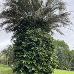 30数年前に、種を植えたココスヤシ🌴 現在大小30本ほど…… 今年も沢山の花と実が付いたけど、これ以上増えるのが怖いな😱