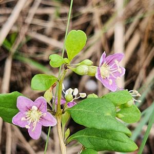 久し振りの散歩…1万歩👟🎵 🌴葛西臨海公園 1️⃣美しい花色が目を引く 『クコ(枸杞)』💜🌿 2️⃣背の低い植物の上を横に這う『センニンソウ(仙人草)』♡🤍🌿 3️⃣『ココスヤシ』🌴🍍🍎 落ちた実からリンゴとパイナップルが合わさったような、甘い香りが漂います♪ 4️⃣『タカサゴフヨウ(高砂芙蓉)』別名:ヤノネボンテンカ (矢の根梵天花)🌺♡ 花の外側の赤いラインが、なんともお洒落ですネ❣️ 5️⃣『シャリンバイ(車輪梅)』🍒🍇♪ 陽当たりの良い場所の実は赤く色付いて来ました❣️ いずれ黒く熟して葡萄のようになります。💜🌿♪🎵 これからの季節には、木の実が黒や紫、茶や橙に熟し 観察が益々楽しくなる臨海公園です。🌳🌰🎶 ☆2025/9/19 撮影📱♪