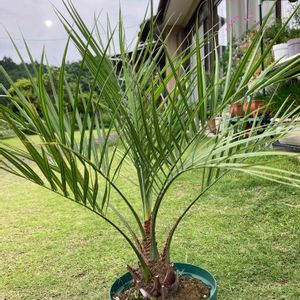 我が家のシンボルタワーココスヤシ🌴 シンボルタワーって1本🙄 うちは小さいの合わせたら 6本🌴🌴🌴🌴🌴🌴 右下は4株植えあります。 大きくなったらど〰️なるの🤣 5年前と比べるとだいぶ大きく 成長しました😁 でかいから剪定も大仕事🪚 電動ノコギリほしーな😆