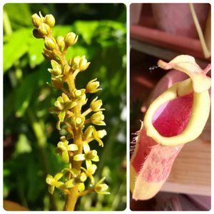 N . kongkanda × veitchii 11/20に投稿したウツボカズラの蕾が花開きました~😆といってもジミーな小さいお花です😅 うーん残念だけど😔観賞価値はないし、株が弱りそうなのでカット✂️します。