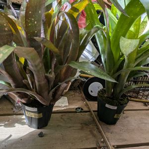 以前ビルベルギアを育ててたけど、冬に多忙で放置してダメにしてしまいました。 ネオレゲリア以外のタンクブロメリアは地元の店舗で見かけることがほとんど無いから、もう育てる事はないかもと思ってたけど、ホームセンターでアモエナとテキーラサンセット見つけました。しかもそんなに高くない。即GET✨ 店内に長く置かれてたのか、色が良くないし、のびのびと徒長してる感じがするから、ベランダでガンガン日向に当ててあげなければ✨✨