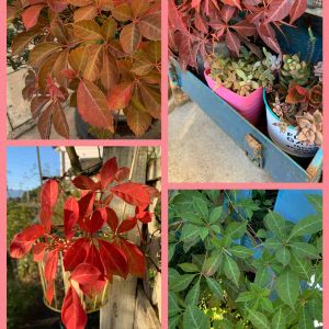 秋ですね🍁 我が家のヘンリーツタが色付きました🍁 でも、置いてある場所で色がいろいろ😅 4箇所にありますが、それぞれです🤗 緑なのは地植えしたものですが、 全く色付く気配がなく全部緑色🍃 1番赤いのは薔薇の下に吊るしたもの 真っ赤っか🍁 上の2鉢は、まあまあ色づいてます。 日当たりかなーー? 緑のは極端に日当たり悪いところだからかな😅