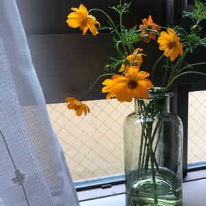 オレンジの秋桜 初めてコスモスの切り花を買ったのですが、 くるんと下を向いてしまいます。。 対処法などありますでしょうか?😣
