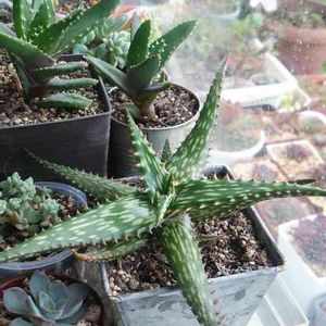 アロエ 植え替えしようと思って並べましたが、鉢がなかったのでそっと戻しました(~ ̄▽ ̄)~