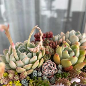 風の強い一日でした🌬 3/3🎎に届いたカット苗たち その後、可愛い子ばっかりで寄せ植えに〜 セダムを入れる隙間も無かった😅 名前をメモ🏷 根も出てきて少しずつ色は褪せてきてるかな? コロコロで可愛い💕