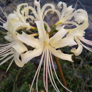 シロマンジュシャゲ 別名アルビフロラとも呼ばれています… 主に九州に自生しています…中国から渡来して日本で咲くようになったようです… 白いマンジュシャゲは…赤い彼岸花と黄色の彼岸花のショウキズイセンを交配してできたものと言われてます… 美しいですねぇ…(*˘︶˘*).。.:*♡✨🤍💫🤍💓✨🤍💚🕊️🤍✨🤗…