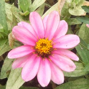 零れ種で毎年元気に咲く百日草の花