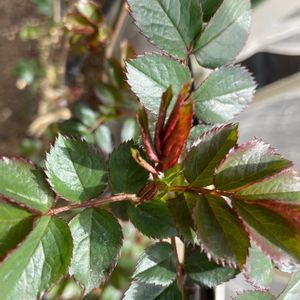 薔薇の新芽が伸びてきました✨ コフレ🌹 昨年の秋にお迎えした 河本 麻紀子さんの薔薇です。 バラの家さんで購入時に ローズドゥメルスリー 手芸屋さんのバラ のパンフレットをいただきました このシリーズ全部すごく素敵で 集めてみたい気もしたんですが、 家の過酷な庭植えでは無理かも なので迷ってまーす💦 コフレは、 鉢で育てていたのですが、 蔓薔薇みたいに伸びるので 現在、庭植えチャレンジ中です。 ほっそりした枝から、 元気に新芽が出て来ました。 咲くとライムグリーンと藤色が混ざって アンティークぽい 素敵な薔薇です✨💕