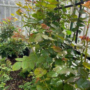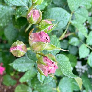 おはよーございます😃 コフレ🌹がやっと開花かな? のんびり屋さんなので、 開花するまでに、 シュートが下から迫ってきましたよ😀🫧 切ろうかどうか思案中✨☔️ (ソフトピンチしました✨)