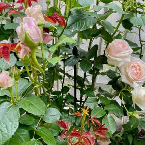 おはよーございます😃 お出かけ前にパチリ✨ ピエールドゥロンサール🌹と コフレ🌹のコラボ😍 コフレは、咲きそうだけど、 これから、雨ですね☔️ 赤いのは、コフレのベイサルシュート2本✨ ここまで、登って来ました✨ 本日も張り切ってまいりましょう✨ 久しぶりに妹2人に会ってきまーす。 すーごく、楽しみ💕