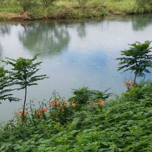 オニユリ💛鬼百合 近くの川辺に たくさん咲いていました。 草が、ボウボウに繁っていたので 近づけなかった💧 お花の側の木 何の木かなぁ(-ω- ?)