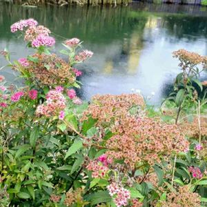 川辺の散歩道に咲く お花 シモツケ たくさんのお花を見せてもらいました バラ科なので 咲いた後も綺麗です!