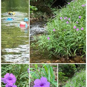沖縄県独自の緊急事態宣言により 学校行事が中止になり孫達を 連れてのヤンバル行きになりました。 夏は、海🏖は暑く涼しい川を 断然好む孫達をセカンドハウスから 車で7〜8分の所にある川で水遊び させてきました。 川辺にはヤナギバルイラソウの 群生があり、午前に来た時は満開の 花が帰る午後2〜3時頃には萎み すっかり景色が変わってました。 1日で終わる花だと帰ってから調べて 知った次第です😢