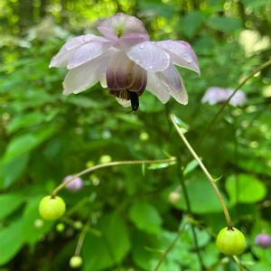 雨上がりの朝、咲き始めたレンゲショウマ。 虫が花の中で何やってるんでしょうか😊