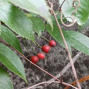 【ヤブサンザシ・藪山査子】 おはようございます🍃🍃🍃良き一日を 我が家の自生もの。足元で「ここ、ここですよ」呼び止められたかのよう👀☆和名は、藪の中で見られ、バラ科のサンザシに似た果実をつける事から。かわいい実🐈🤍♪