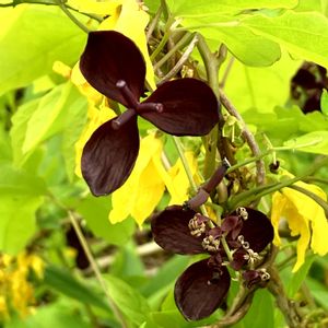 こんばんは🌙*.。 曇り空で午前中寒かったです😀 来週からはかなりの寒さ予報💦 今日のお花 ✨ アケビ ✨ これはアケビの花でしょうか❓ 2枚目は生まれたてのようですが… 初めて見る植物でした😊 食べた事もないような気がします😅 今年の6月前後に道の駅にて🤳