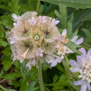 今日のお花 マツムシソウ 1️⃣花の後こんな風になるとは⁉️今年5月27日 お台場のシンボルプロムナード公園花の広場にて📸 2️⃣絶賛開花中😆