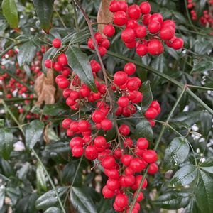 ❤️ナンテン❤️ 赤い実がたくさん❣️ 昨日のヤツデの側に植えてあった ので紅白の写真を撮ってくれば🤳 良かったなぁと気づきました😊