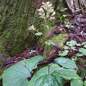 杉並木の脇に草丈30~40cmの花が。 お名前教えて?タグに 「オオカニコウモリ」 と教えて頂きました。 ありがとうございました。 キク科コウモリソウ属