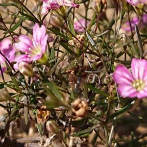 草丈15~20cm、花の大きさ 直径で1cm 位です。葉は 青緑の細長い葉です。 @navy様に「カスミソウ」と教えて頂きました。 ナデシコ科カスミソウ属 「ギプンフィラ・レベンス」 ヨーロッパの山地草地、岩場に、晩春~夏に咲く。 晩秋のこの時期に頑張って咲いていたのですね。