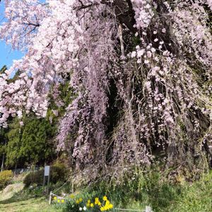 枝垂れ桜 (樹齢250年) 数年前に大雪で、連れ合いを奪われた桜•••「夫婦枝垂れ桜」が見事に復活していました。