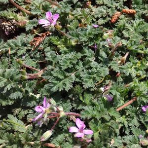 桜見物に行き、足元にも桜色🌸の小さな小さな花(花径5ミリ位)が。何でしょうか? 帰宅後調べて見ました。 オランダフウロ フウロソウ科