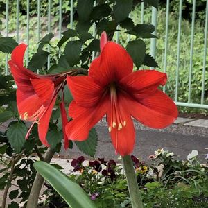 アマリリス🟥 散歩道のミニ花壇 濃厚レッド❤️ 美しい〜✨✨(=´∀`)