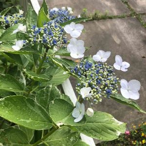 あまりいい写真じゃなくてごめんなさい。 隣との境界に咲いている、斑入りガクアジサイ(おそらく恋路ヶ浜)。 最近どんどん伸びるので仕方なく刈り込むと花の付きが悪いです。