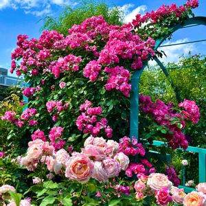 西武本店の空中庭園にて モネの池に架かる橋には バラのアーチ🌹 色とりどりのバラや他のお花達に 癒される空間です😊✨🌹💕✨