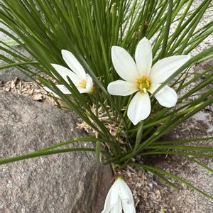 雨が続く中…こちらのレインリリーも。 いつの間にか咲いていた、タマスダレ。 植え込みの石垣の下なので、放置状態でした😅