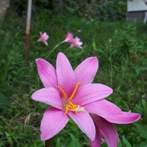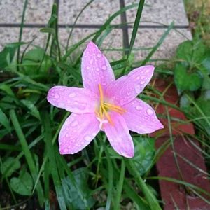 道端に咲いていた可愛いお花(*^^*) 名前がわかりません( ;∀;) →「レインリリー」とわかりました!! 教えてくださり、ありがとうございます(≧∇≦)