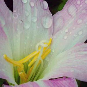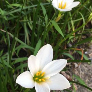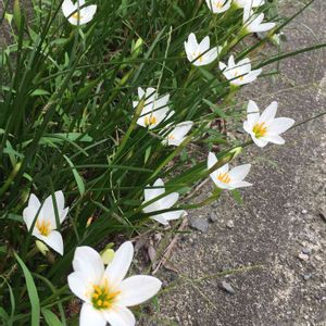 お名前教えて頂き、ハブランサスとゼフィランサスの違いを調べてました。 別名レインリリーとも言うそうです。 夕立が通り過ぎお庭に出たら雨粒が……😍これが本当〜のレインリリーですね🤗☔️