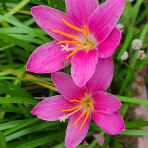 おはようございます。 今朝は雲で覆われた曇り空です。気温26℃,。 道路側道で見かけたお花達を投稿させて頂きます。 通勤時側道に競うかのように『 レインリリー 』さん、咲いていました♪。😁 そのpℹ︎c1️⃣〜3️⃣ 今日、明日、雨風強いようです。皆様元気にお過ごしください。 今日もよろしくお願いします。🙇