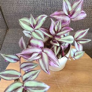 こんにちは👋😃 トラディスカンティア ゼブリナ。 春に挿し芽した4号鉢。 1つ前の投稿が、親株です。 この子も、鉢増し植え替えが、必要かもですね。
